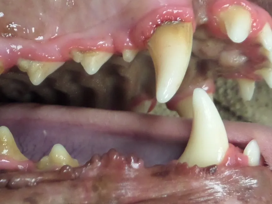If we are waiting until our pets stop eating from a sore tooth, then we have waited too long. Most of the time, the first signs are subtle. It may just be bad breath. They may chew a slightly different way. They may start shying away from petting around their face or head. Some will scratch at their mouth or rub their face along furniture or the carpet. Others will just seem like they are “feeling their age” or have slowed down a bit. In more severe situations, you may notice discolored teeth, red swollen gums, excessive drooling, or weight loss. It could progress to your pet no longer wanting to eat or only eating very soft foods, but I have found most pets will continue to eat even if most of the teeth in their mouth have a problem!